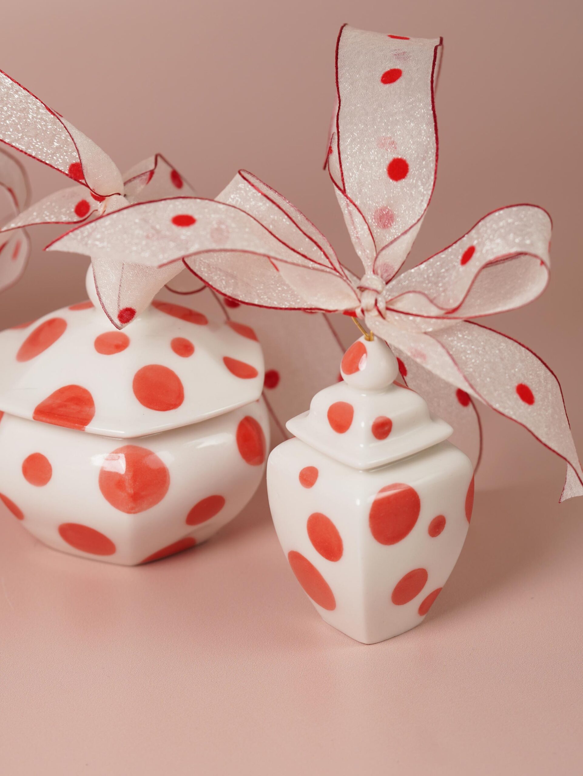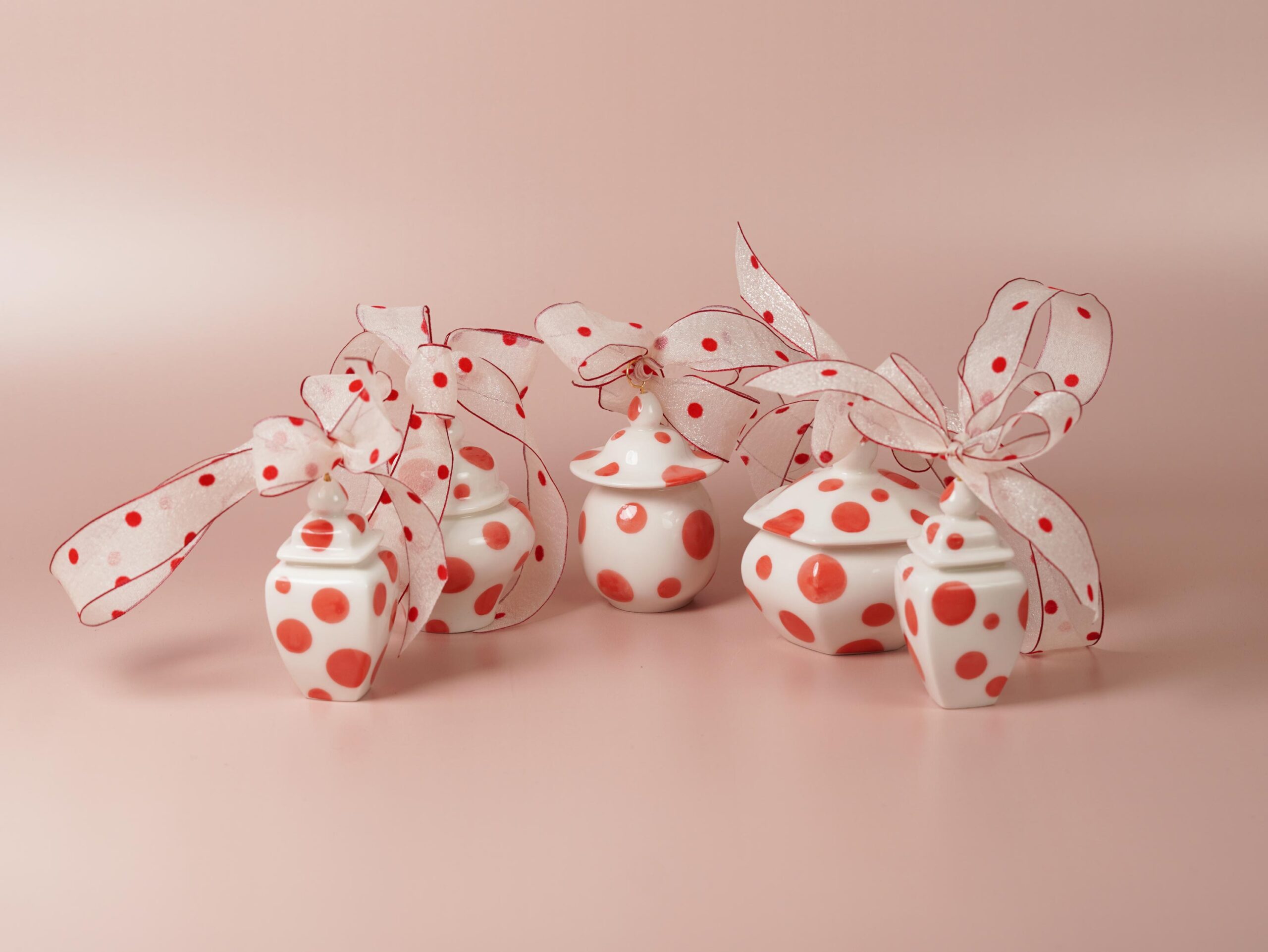 13 original jar shapes, inspired by ancient Chinese porcelain yet reimagined for today. Each ornament is a one-piece form—some with a base, others without. Modern motifs recall timeless designs, with no two ever the same.