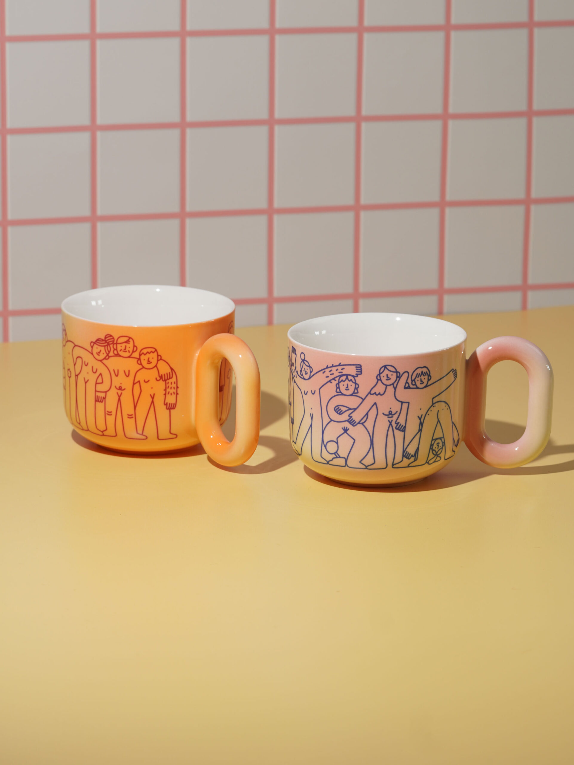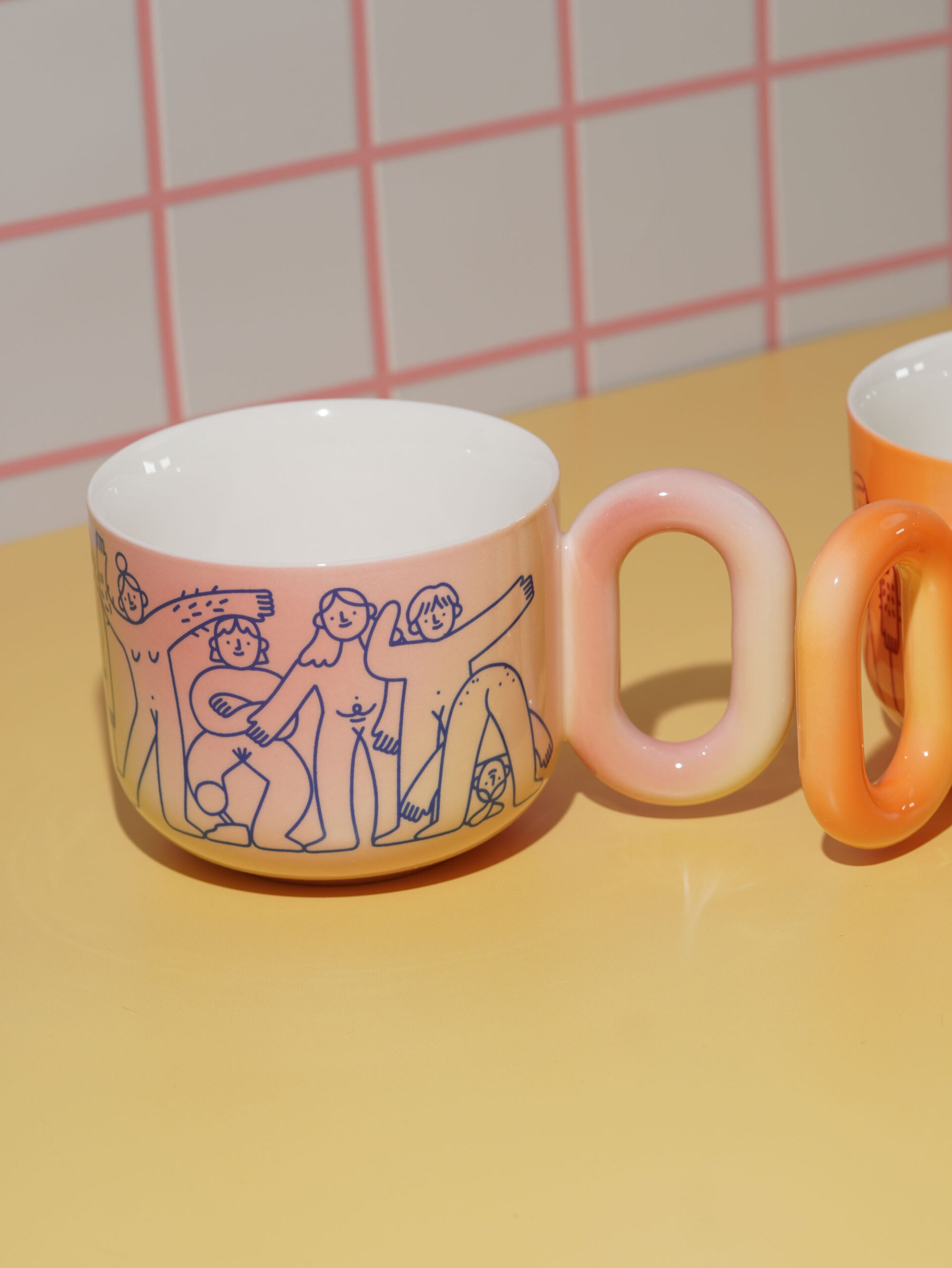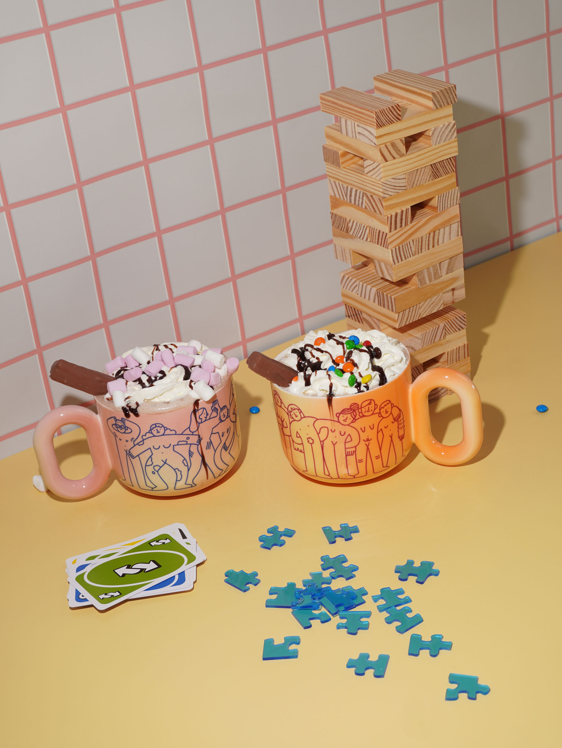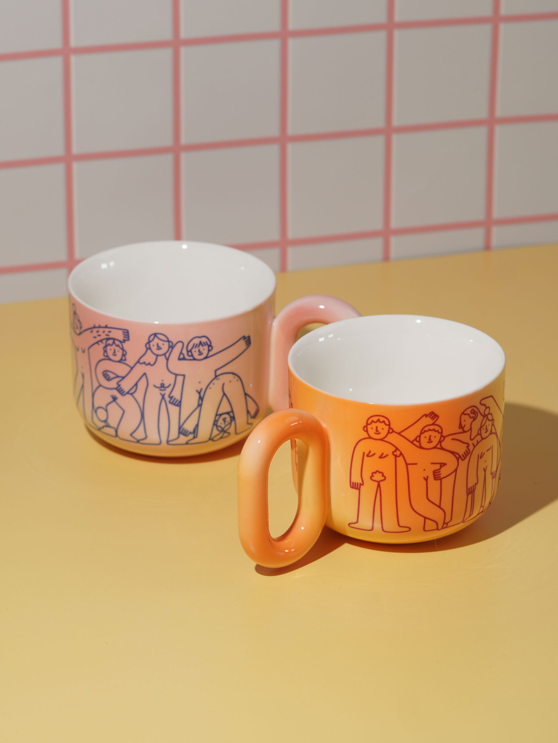 These extra-large mugs feature a round bottom and a playful, thick handle, designed to reflect Eleonora’s whimsical illustrations. Both beautiful and functional, these mugs are made for generous hot drinks, with a handle that’s easy to grip — whether your hands are big or small.