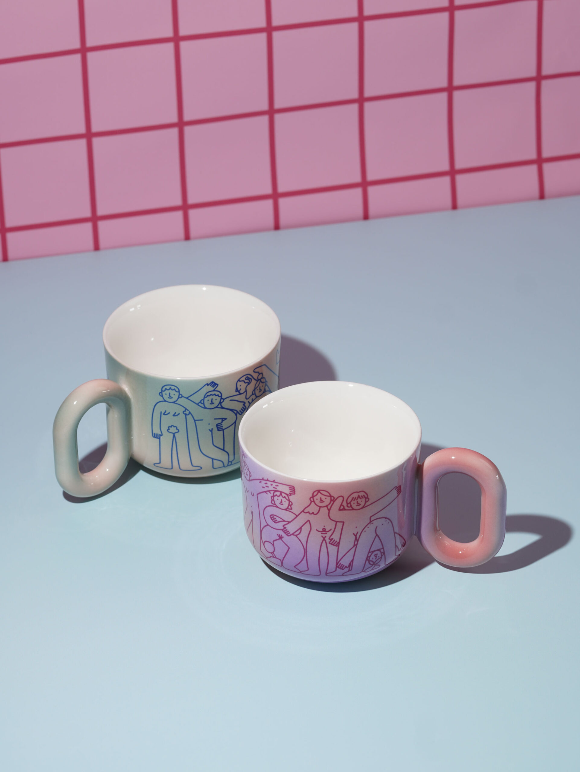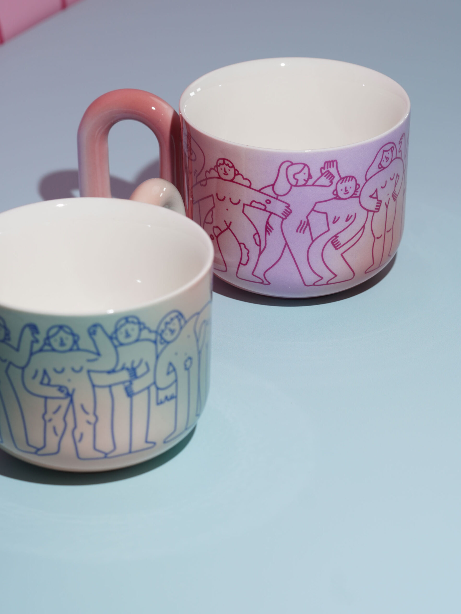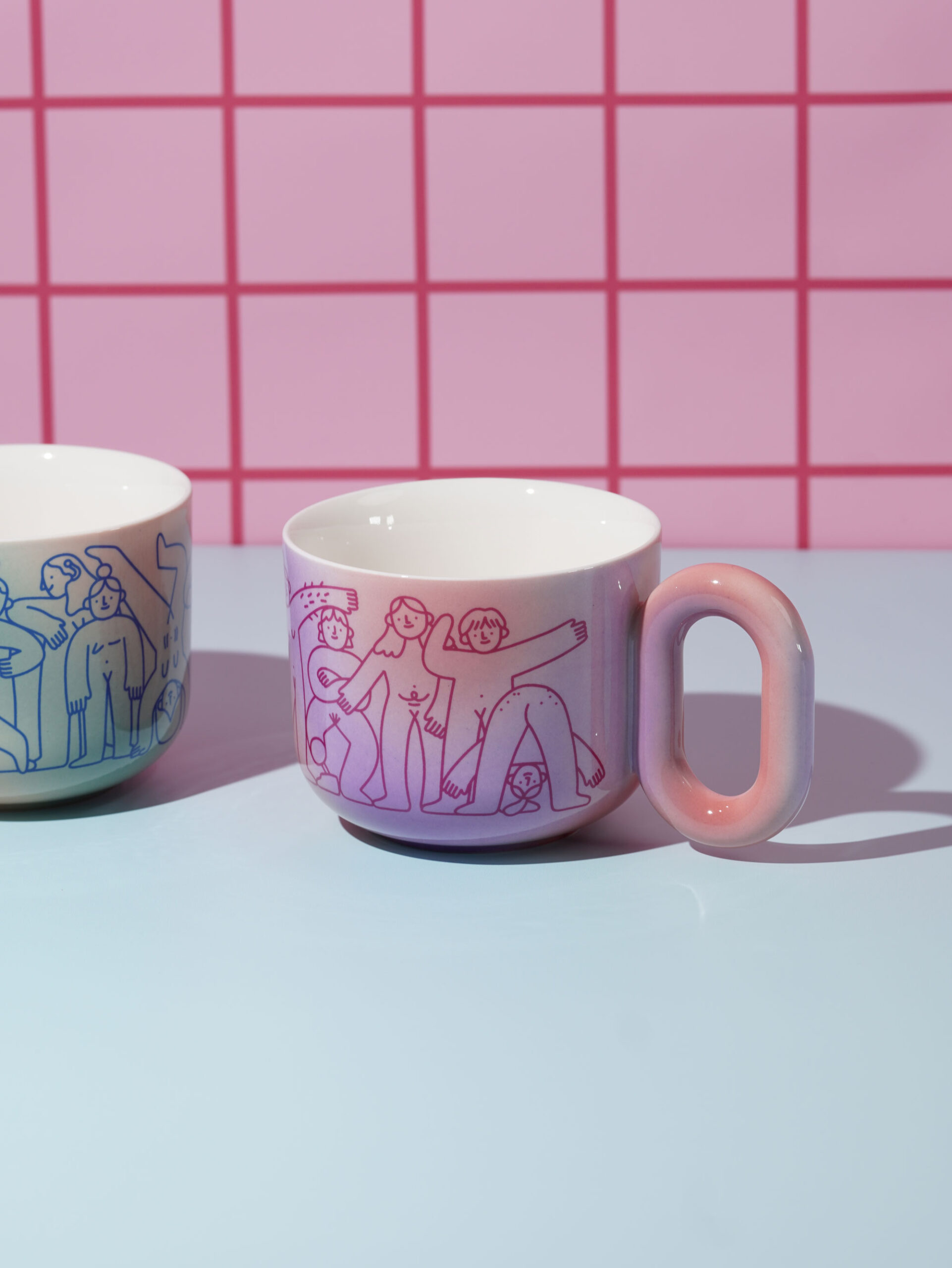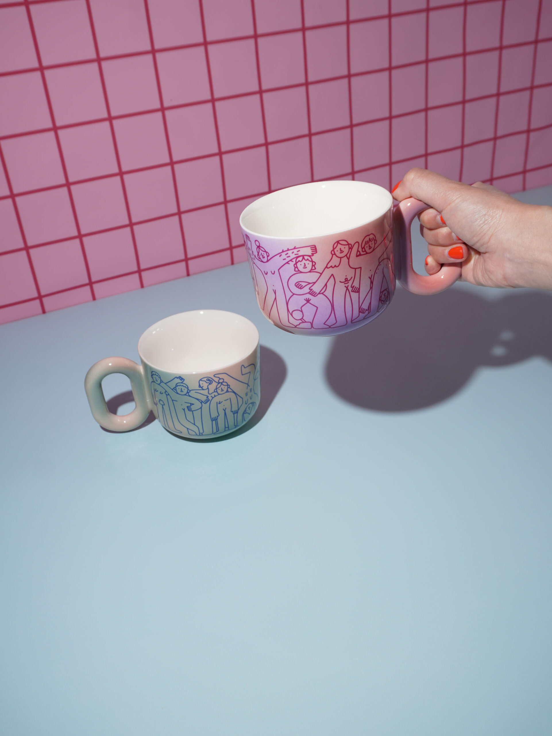 These extra-large mugs are made for generous drinks and big moments with your bestie. Eleonora Arosio’s vibrant illustrations champion female empowerment, celebrating every shape with confidence, love, and joy. The lively Blueberry and Lychee colour palette brings a cheerful pop of colour to your kitchen counter or workspace, making every coffee or tea break feel special.