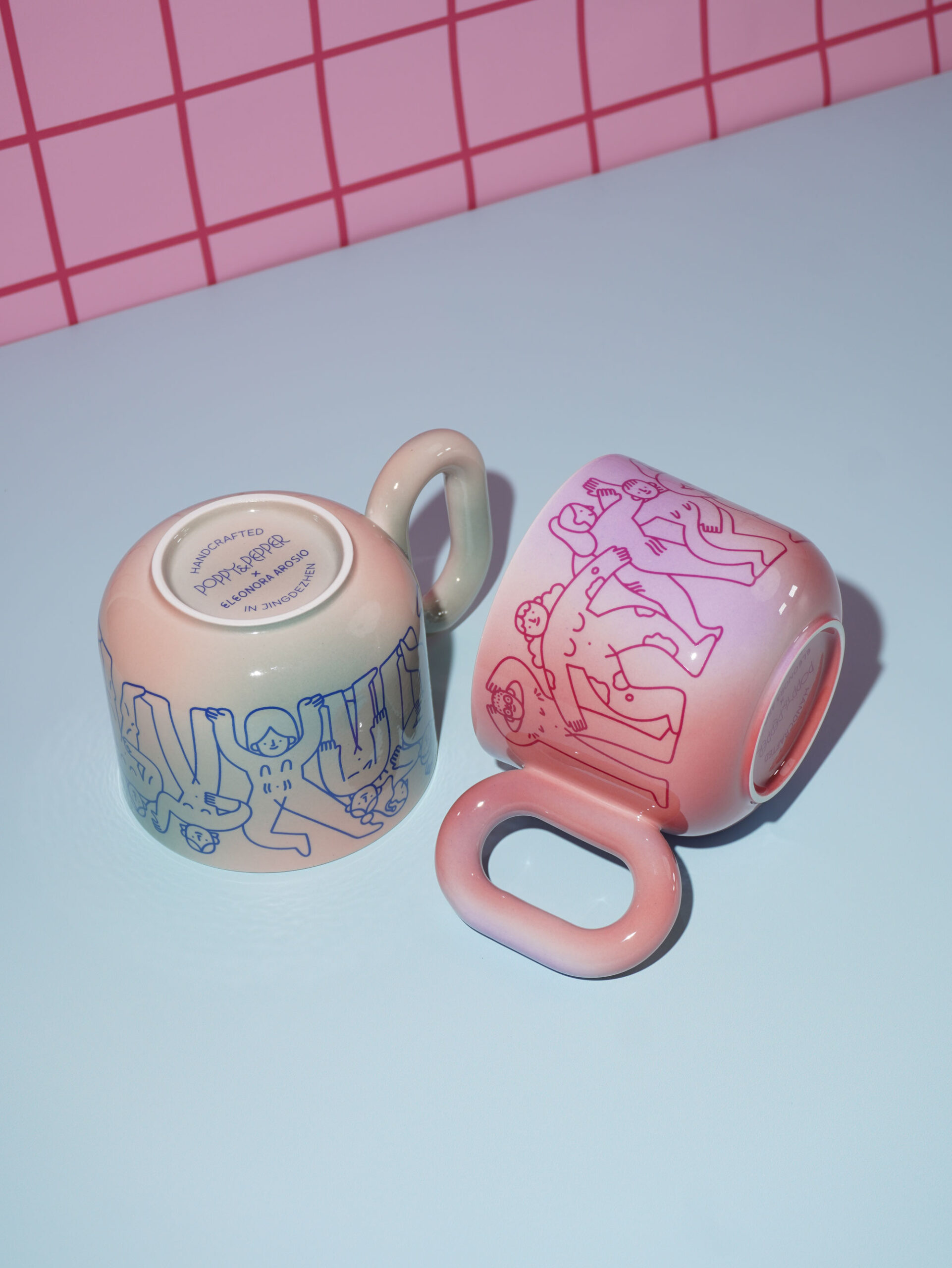 These extra-large mugs feature a round bottom and a playful, thick handle, designed to reflect Eleonora’s whimsical illustrations. Both beautiful and functional, these mugs are made for generous hot drinks, with a handle that’s easy to grip — whether your hands are big or small.
