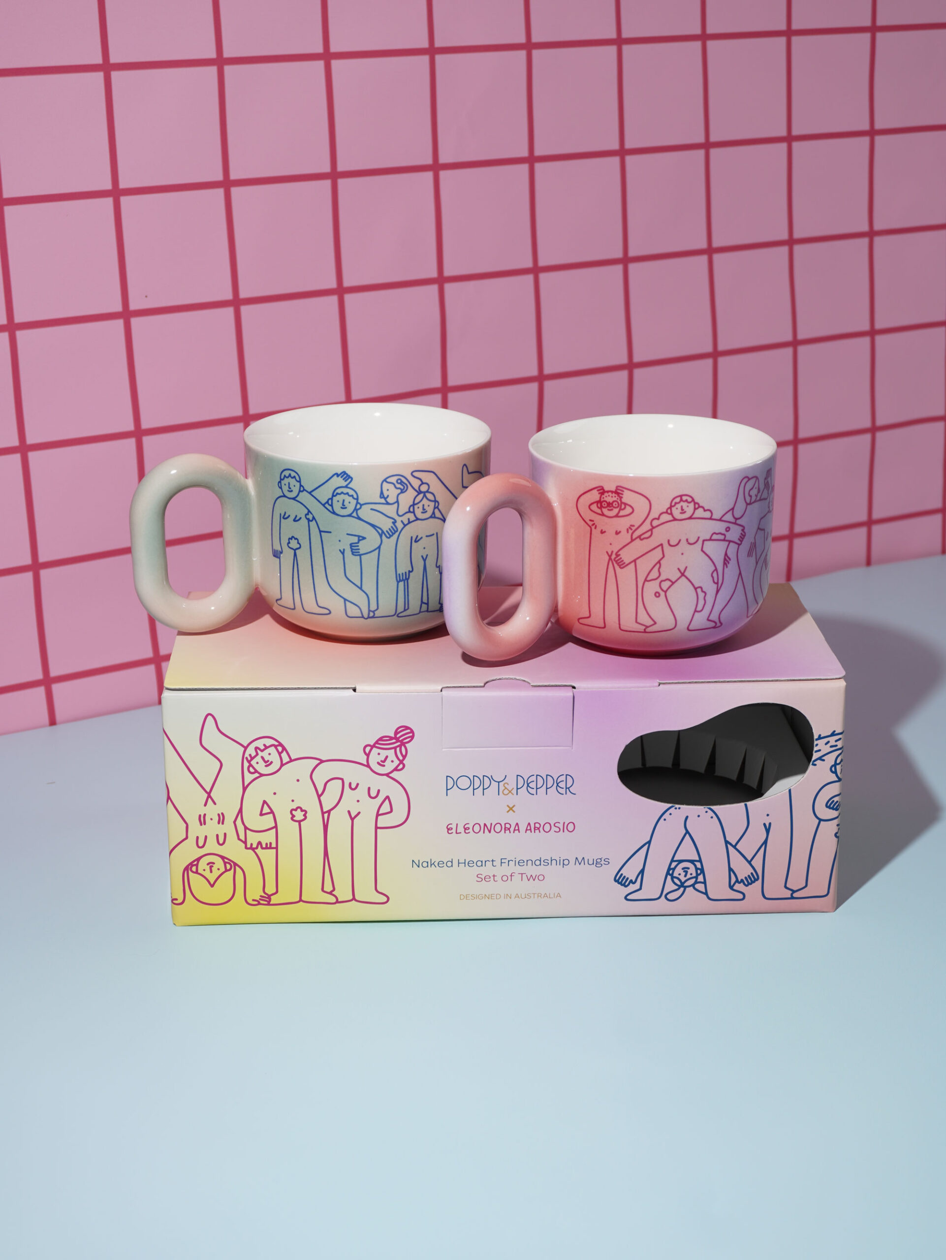 Our Naked Heart Friendship Mugs collection was photographed under studio lighting. During post-production, we carefully adjusted the colours to ensure an accurate representation of each piece.