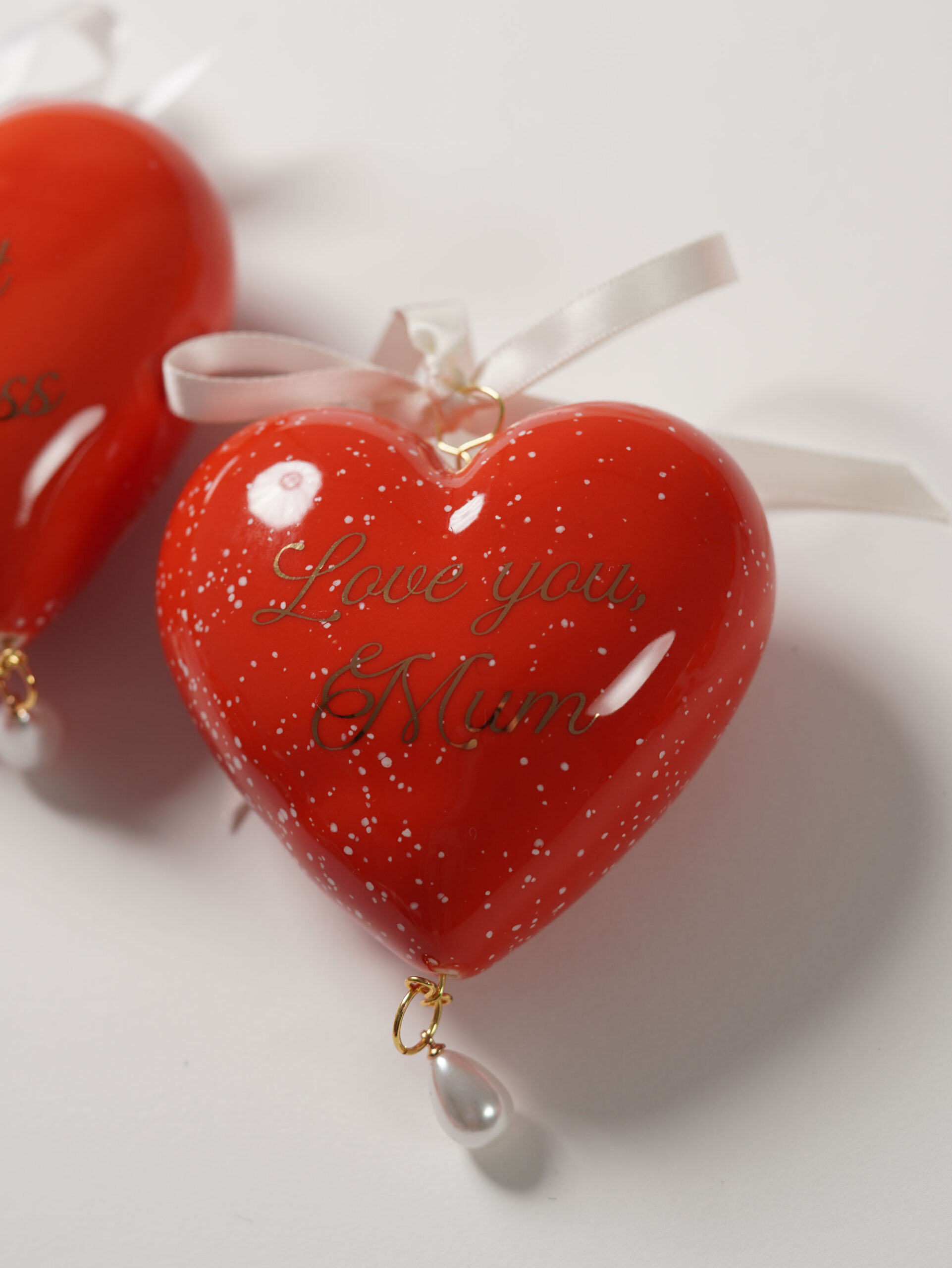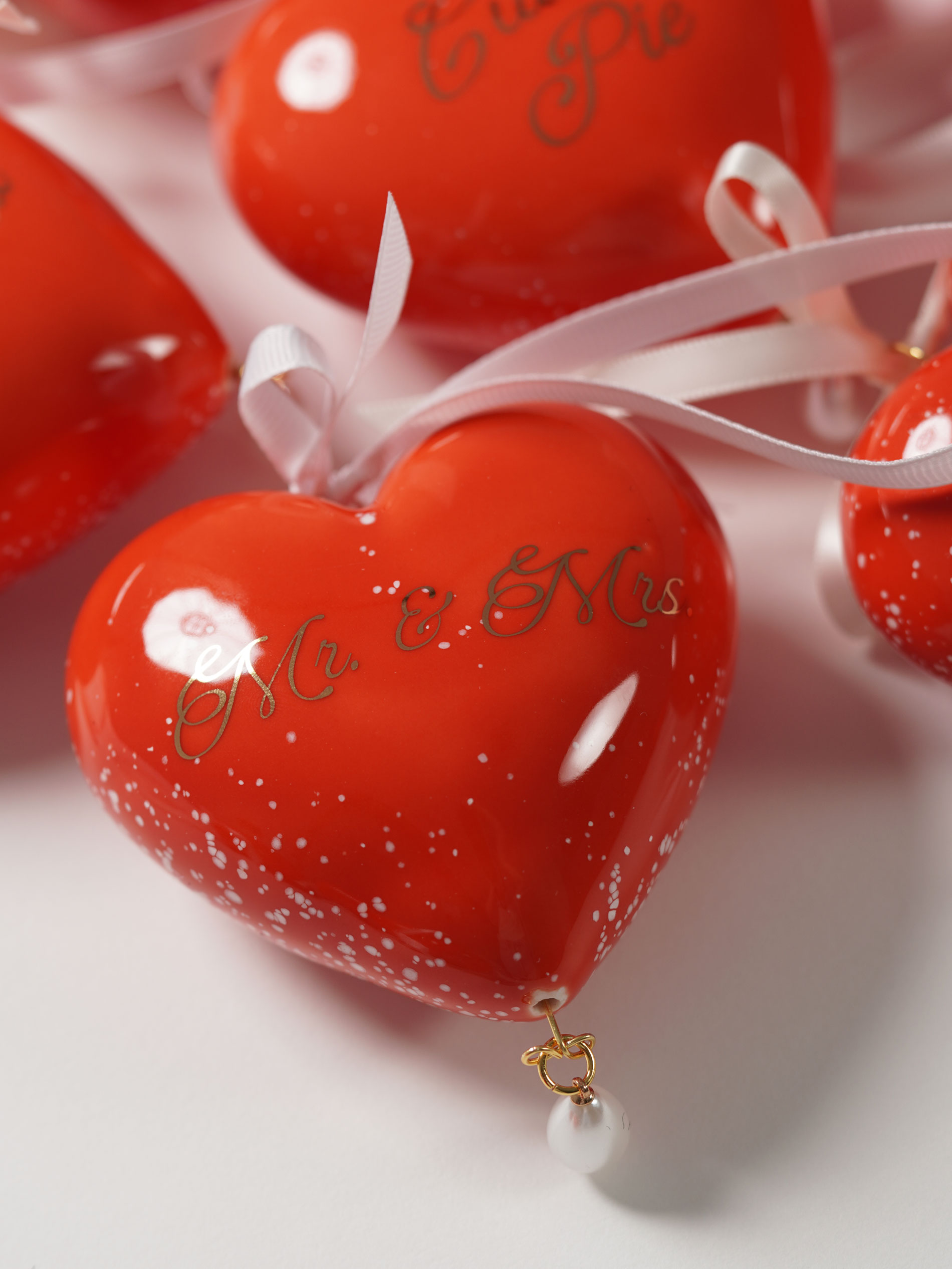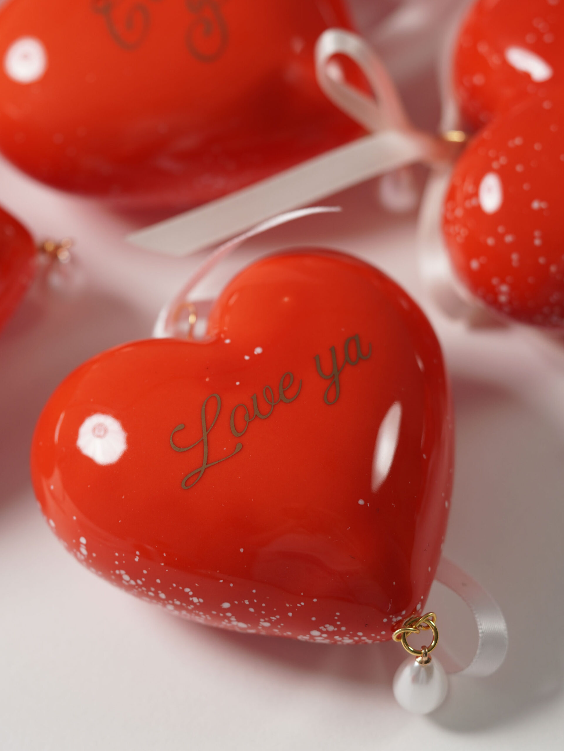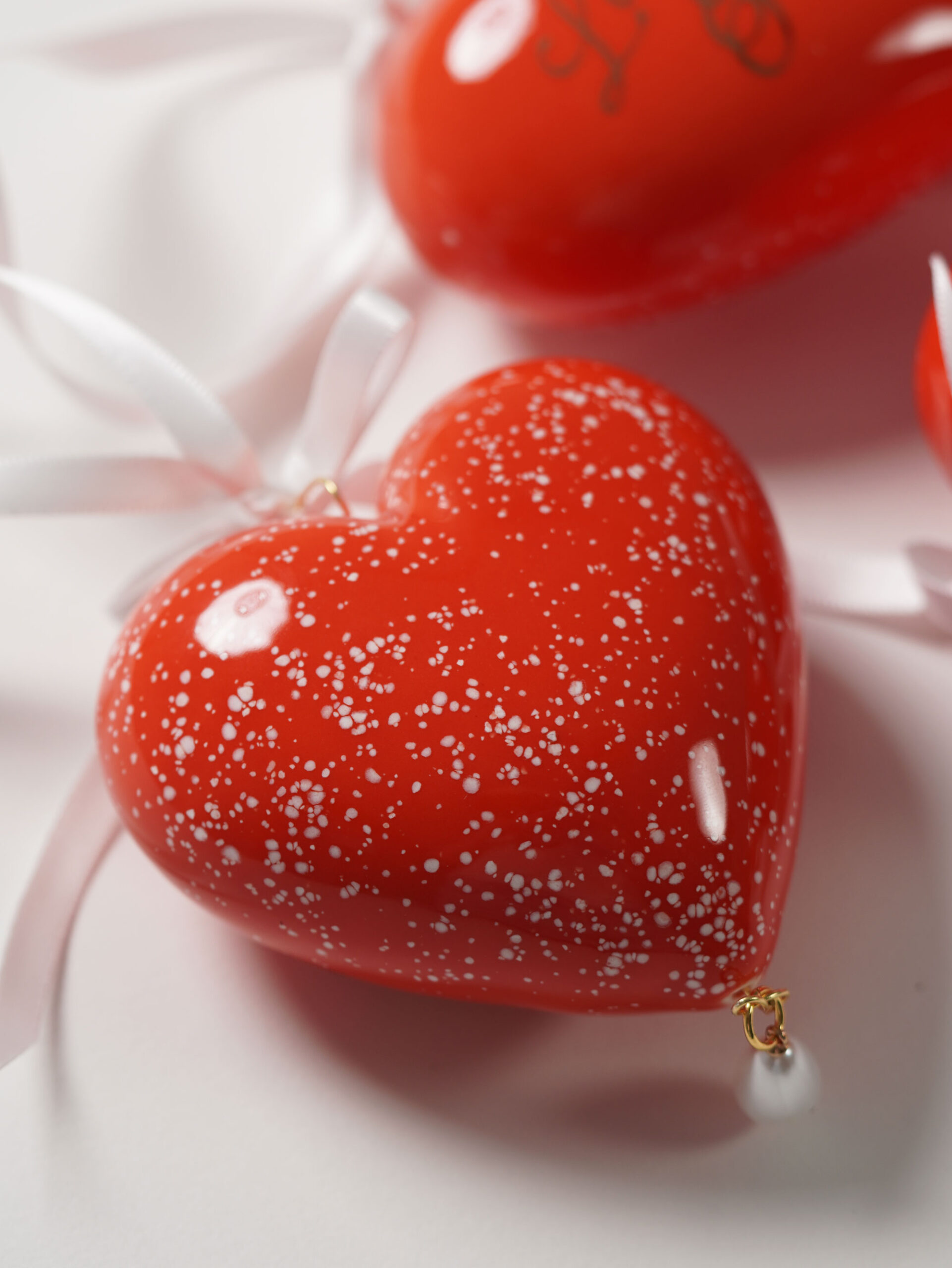 Slight deformation and shrinkage during ceramic firing is natural. Each ornament features a heart-like shape, but not a perfectly symmetrical heart.