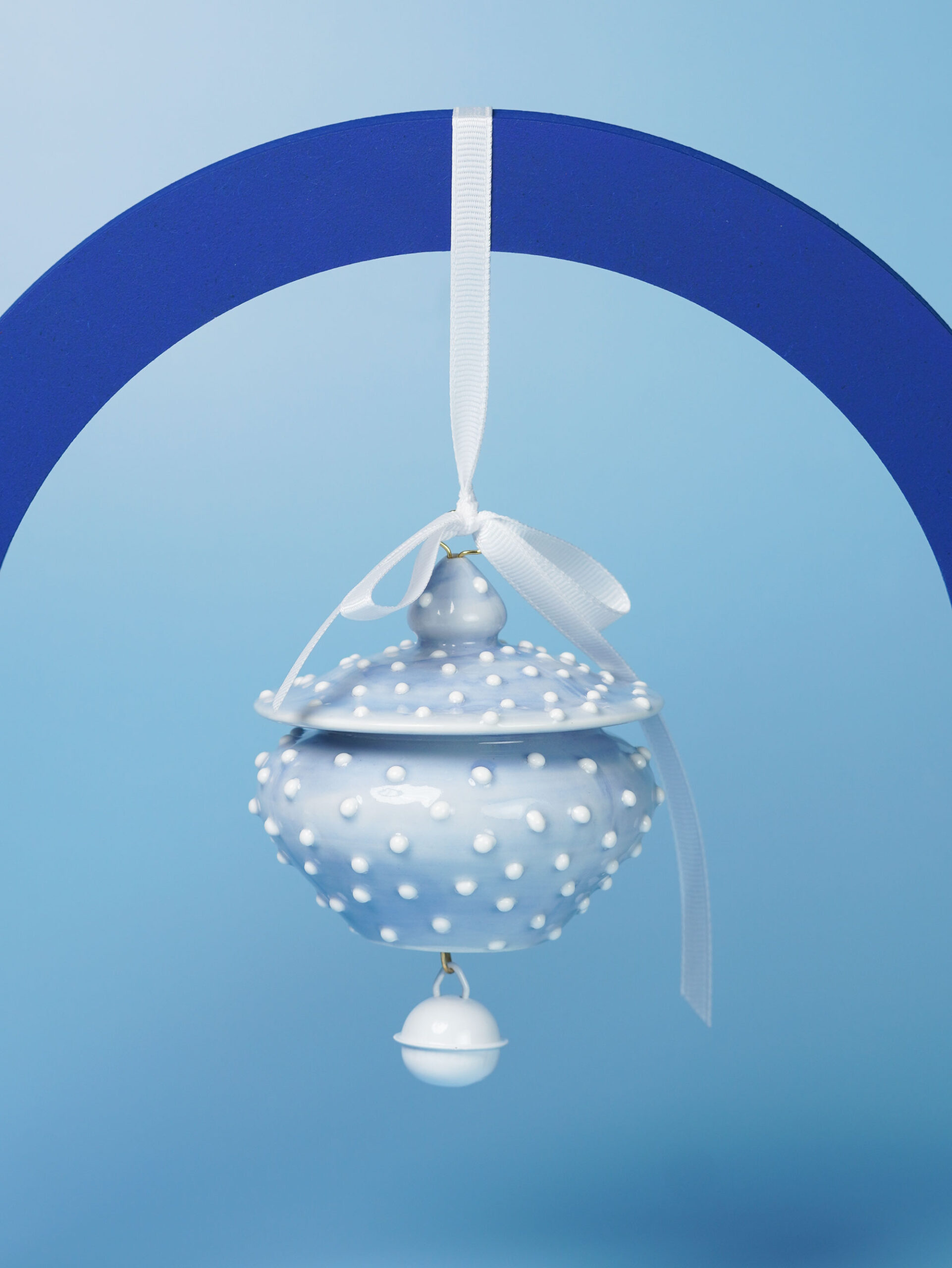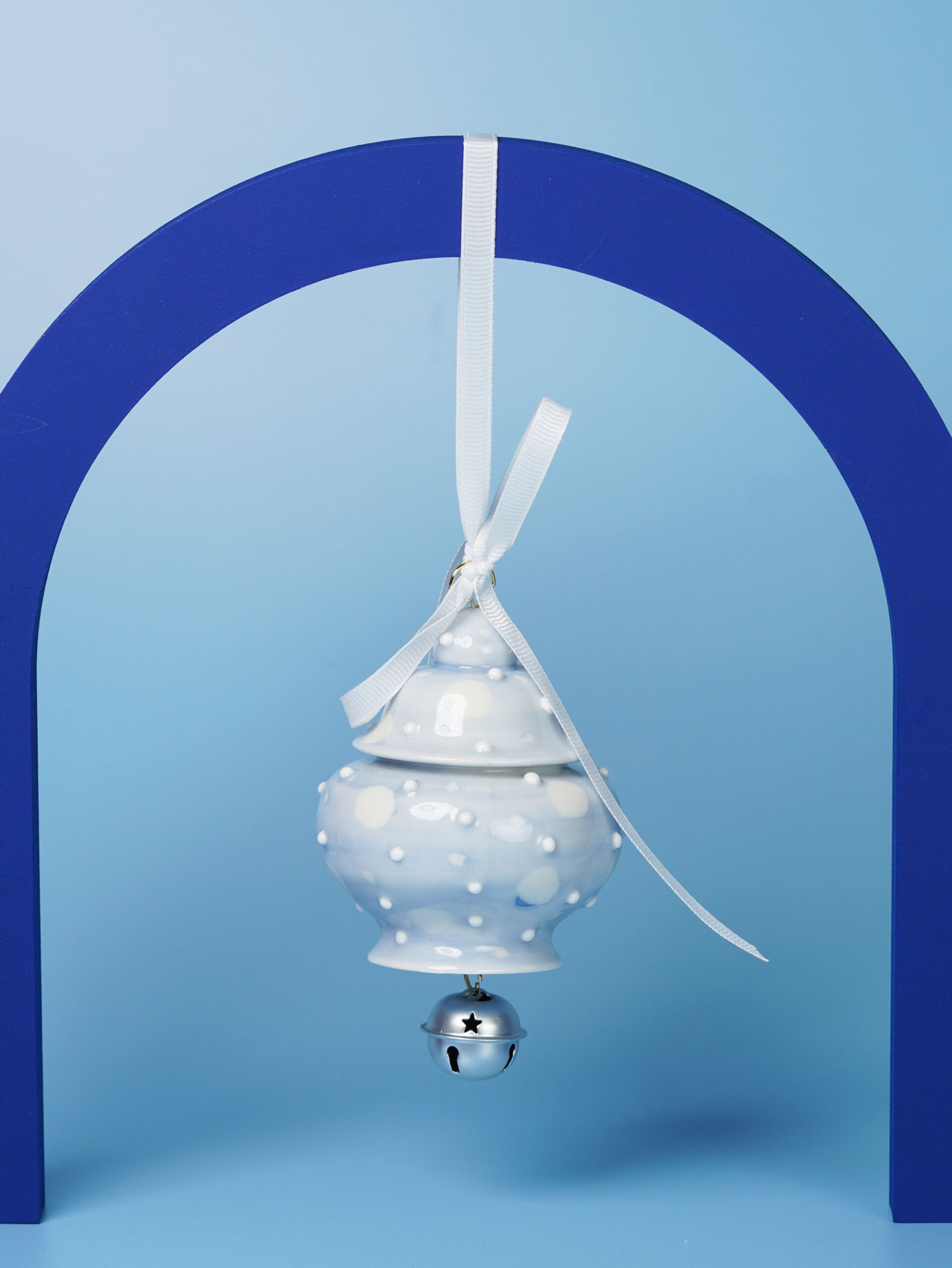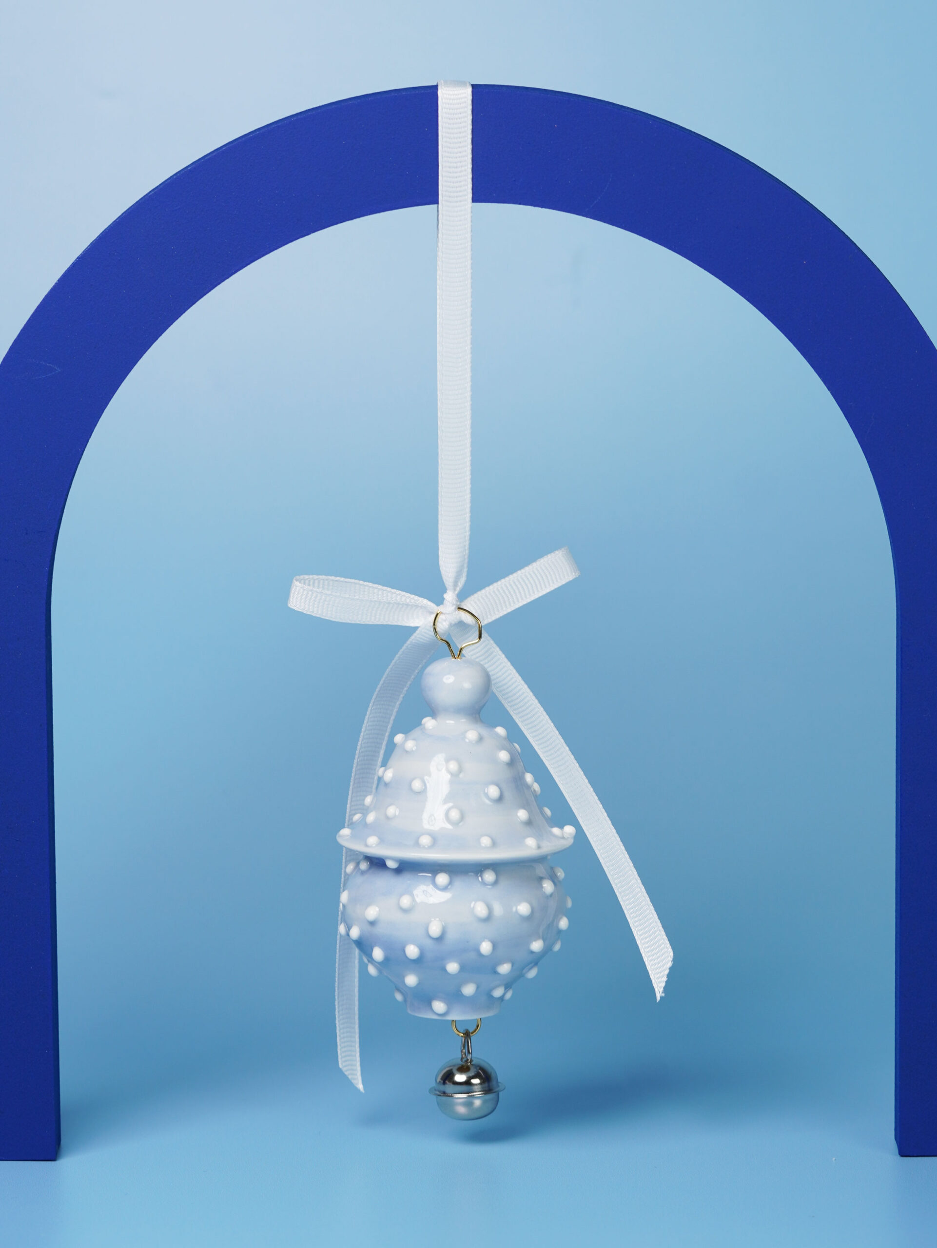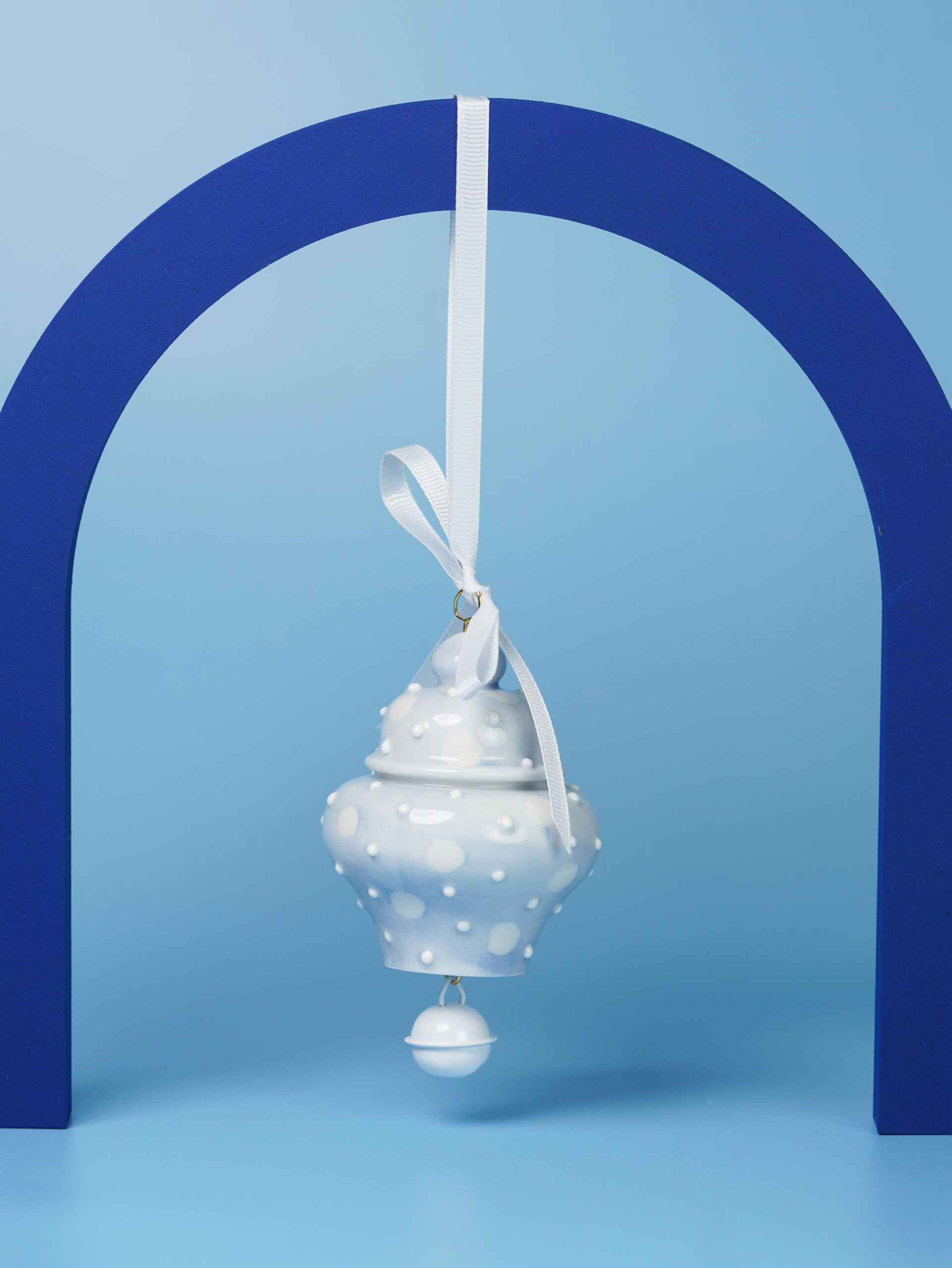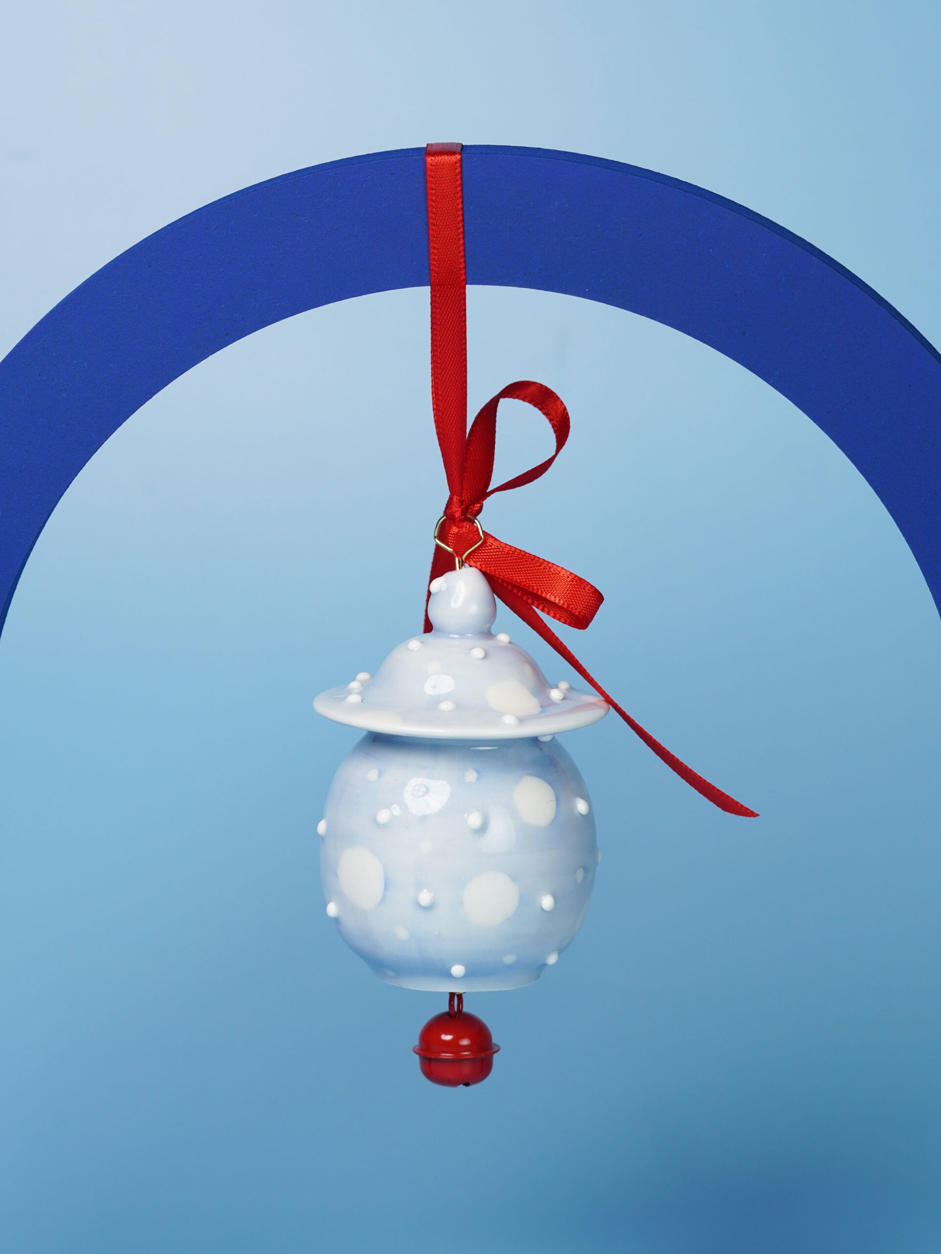 Each piece is slip-cast, hand-decorated with cobalt blue underglaze, and coated in a clear glossy glaze. A soft 18k gold-gilded wire runs through the ornament, ready for hanging. Finished with blue, white, or red ribbons for a festive touch, and some accented with one or more tassels.
