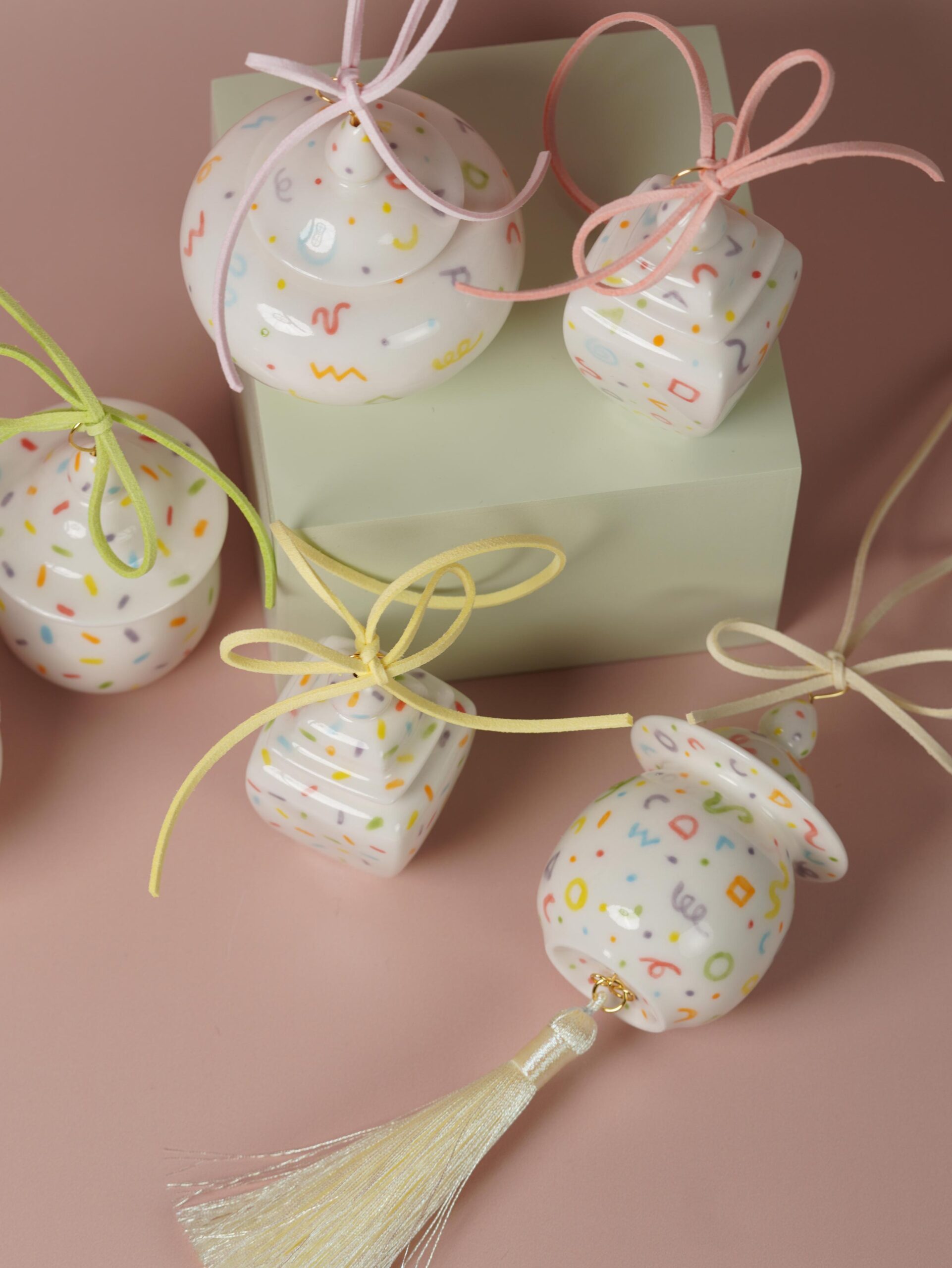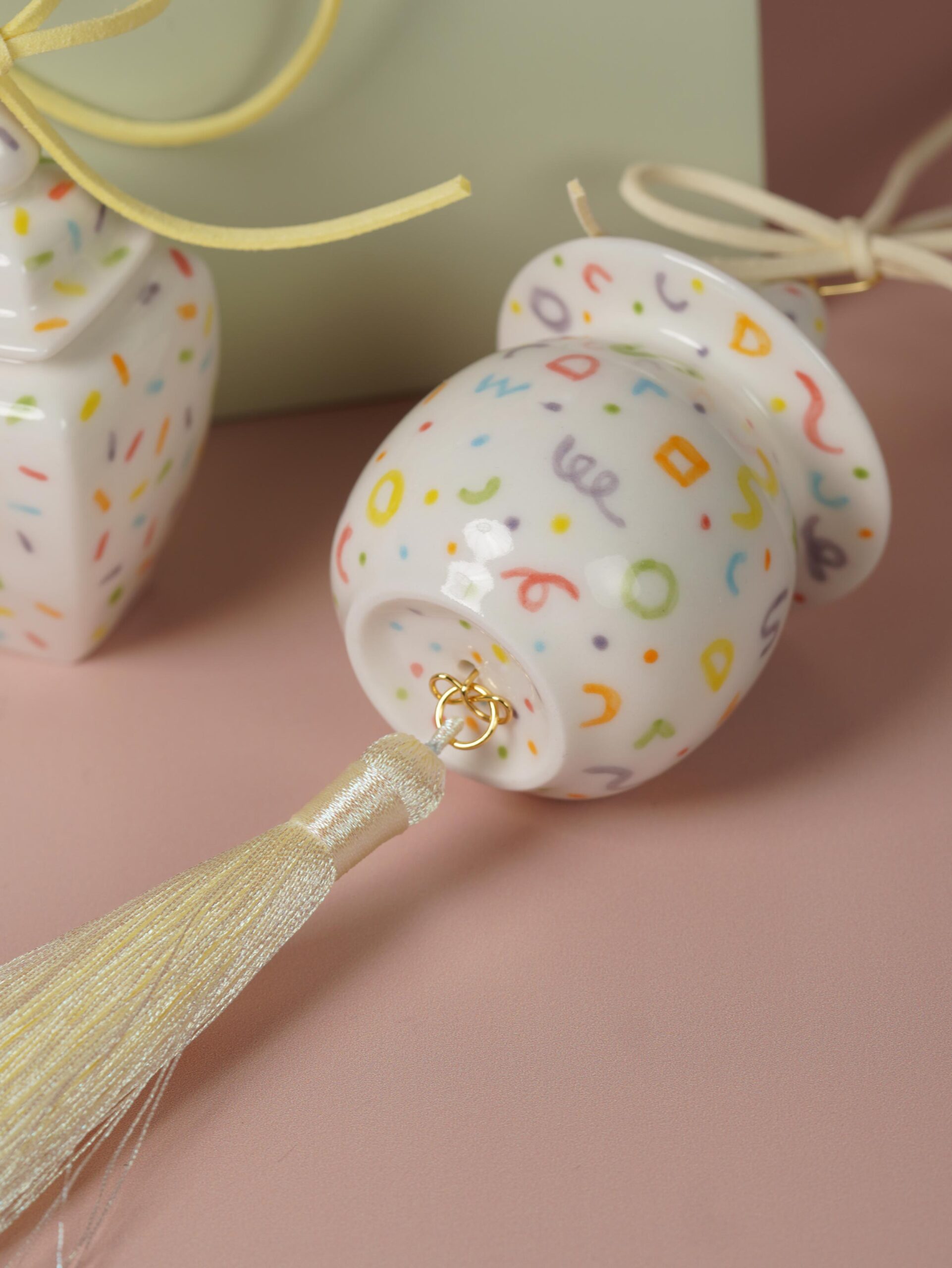 Every ornament is finished with a ribbon on top and, optionally, a tassel or charm at the bottom. Presented in a gift box designed to spark curiosity and delight.