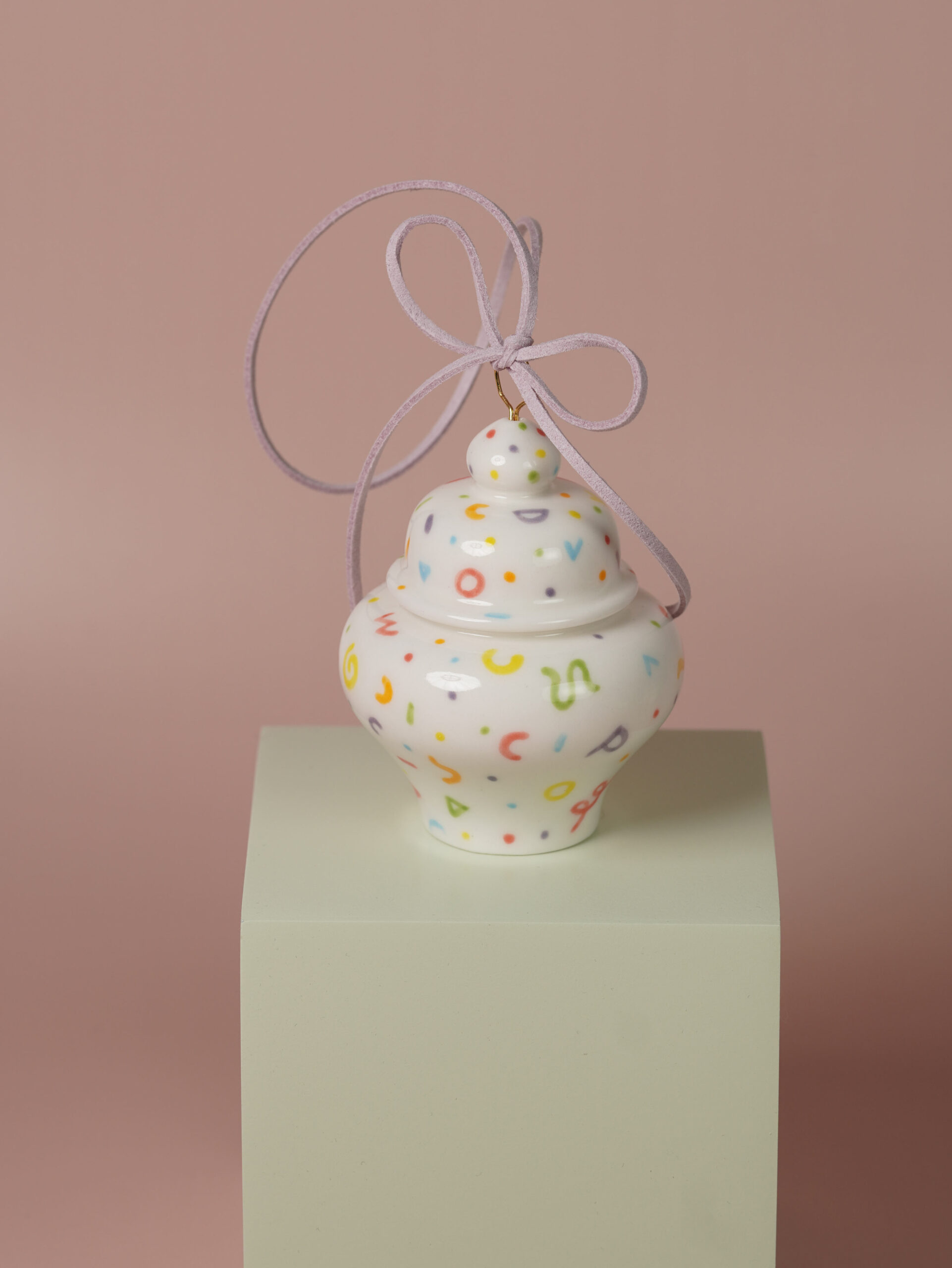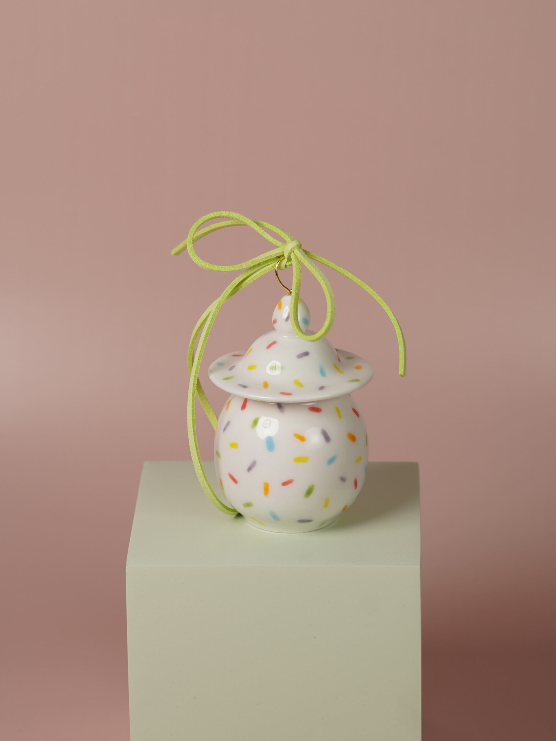 Porcelain slip, underglaze, and overglaze sourced from Australia, New Zealand, and China. Finished with a clear glossy glaze. Ribbons, wire, and threads are carefully sourced from Korea, Japan, and China.