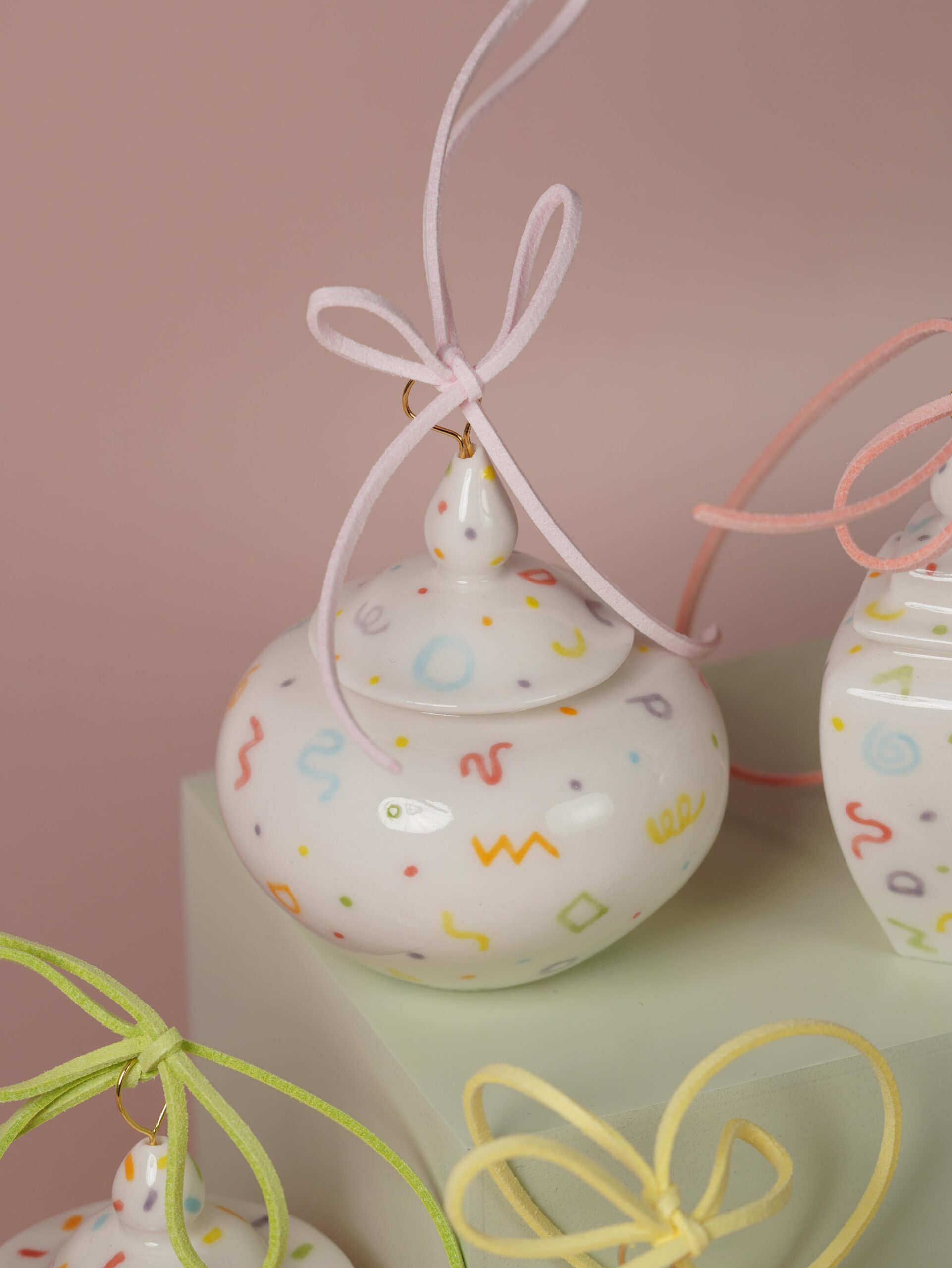 All ceramics and tassels are handmade by Shiàoh in her Melbourne studio. Each ornament is truly one of a kind, crafted in very limited numbers. While designs may be similar, handmade spontaneity means no two are ever identical.