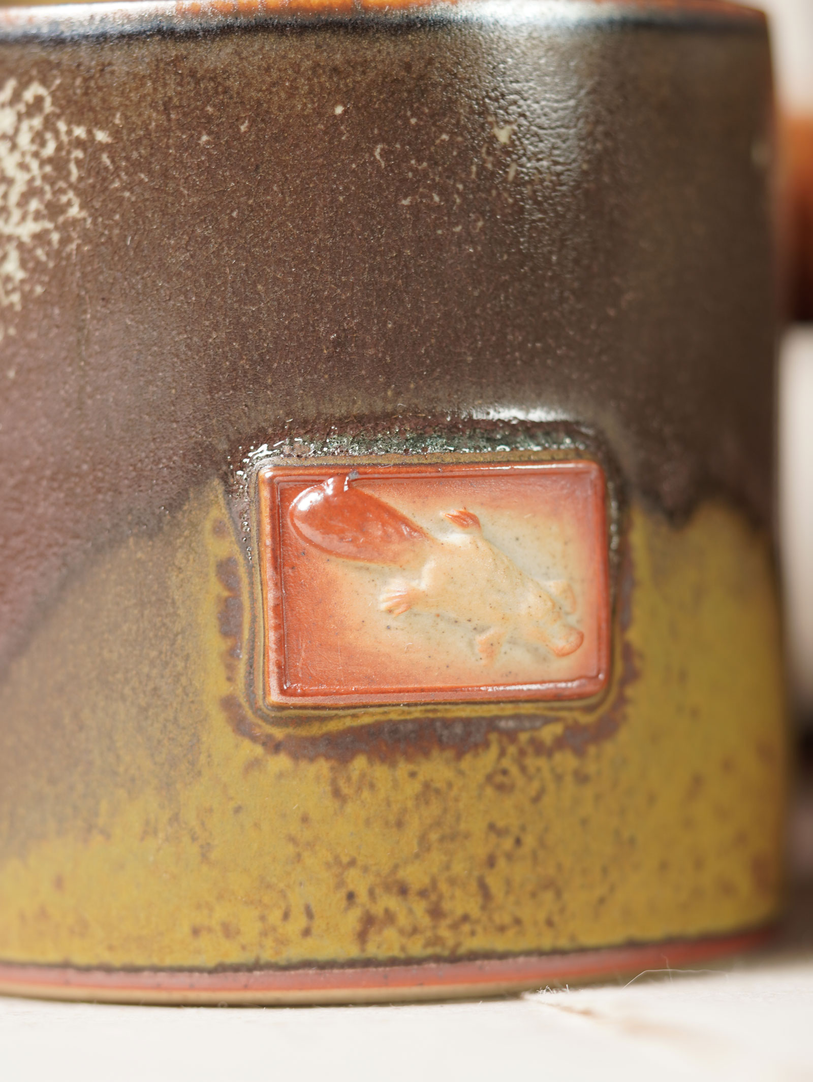 A tan glaze that flows and changes due to the heat of the kiln. The effect is almost watery, creating the river habitat for the platypus. Part of the charm of this collection is that every piece is unique – there are always slight colour variations.