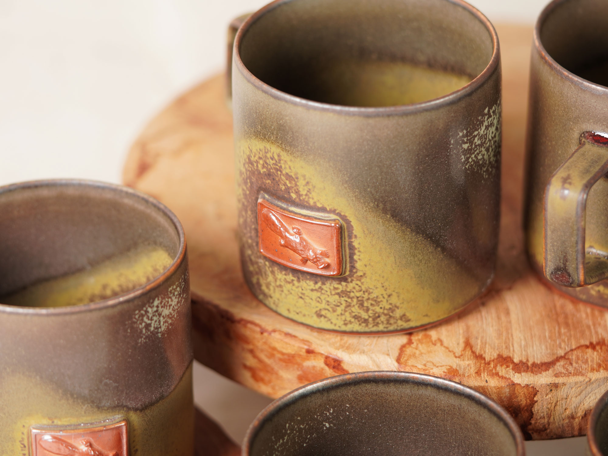 Each Australian animal mug is hand thrown with either clay or porcelain; then hand glazed inside and outside with food-safe glazes. The tiles themselves are created using digital 3D sculpting and printing techniques, then moulded with clay, before being hand mounted to the mug; the tiles are unglazed.