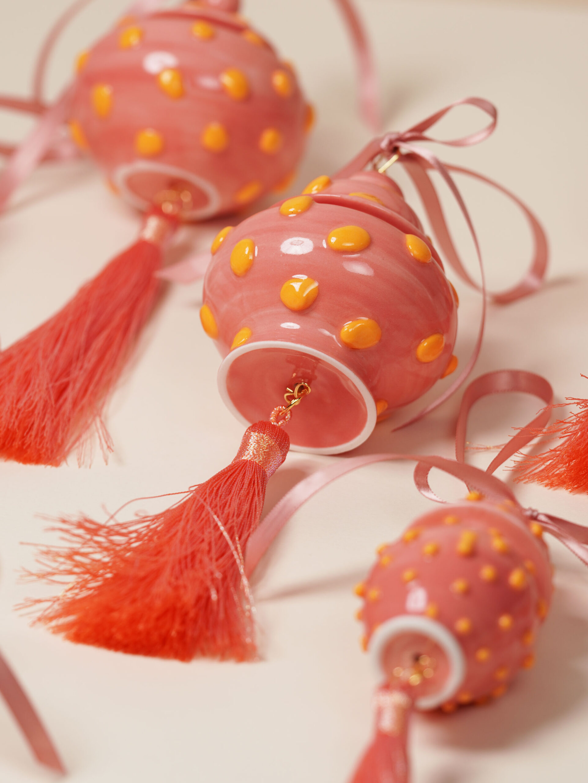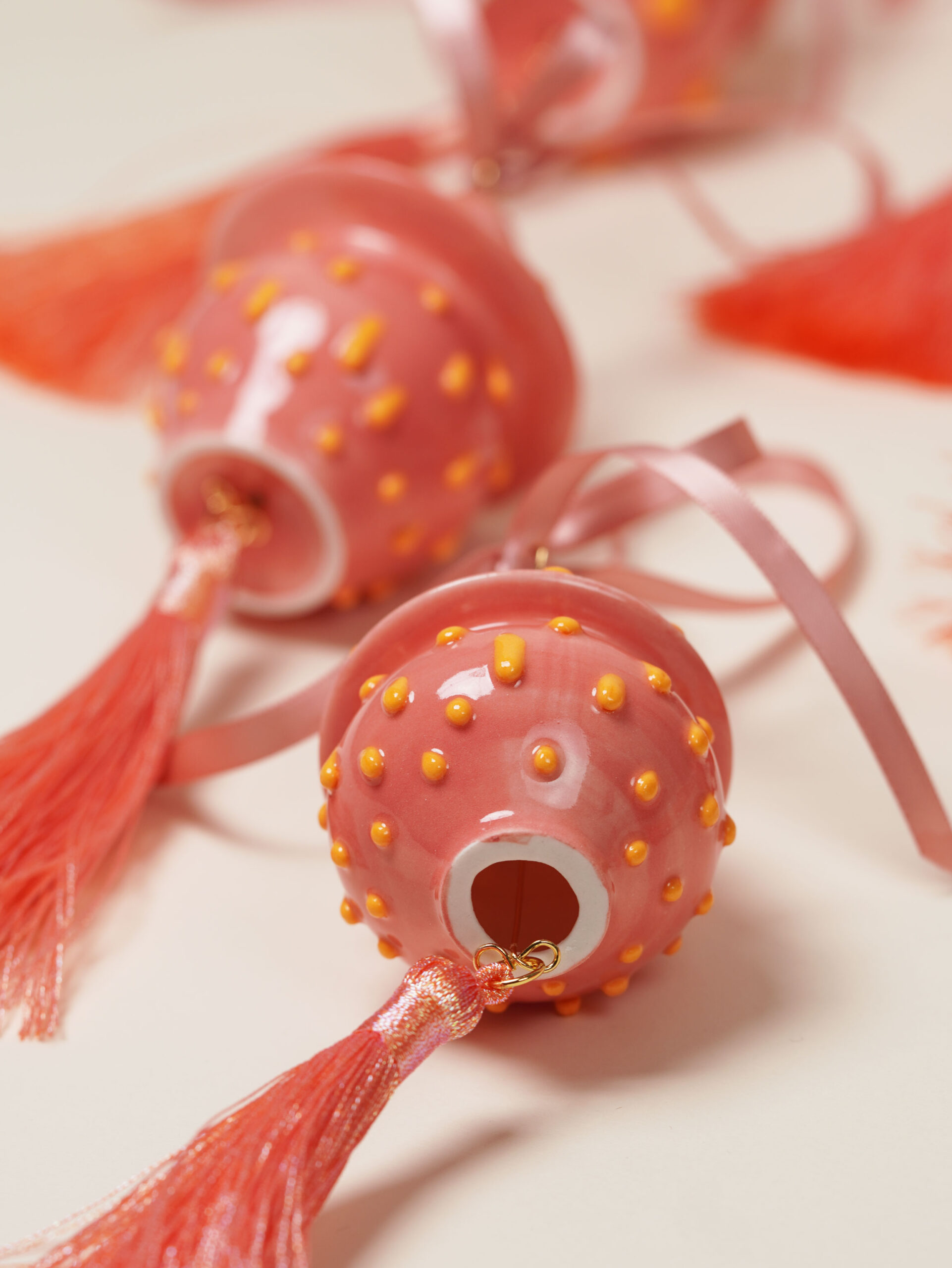 All ceramics and tassels are handmade by Shiàoh in her Melbourne studio. Each ornament is truly one of a kind, crafted in very limited numbers. While designs may be similar, handmade spontaneity means no two are ever identical.